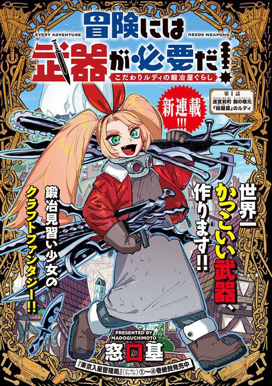 Rudy, who is working as an apprentice ironmonger in a dungeon town, is striving to become the world's top blacksmith by making bizarre weapons, despite being scolded by her boss. A craft fantasy story depicting the daily lives of ordinary people in the town outside the dungeon who support the adventures! (Source: Futabasha, translated)