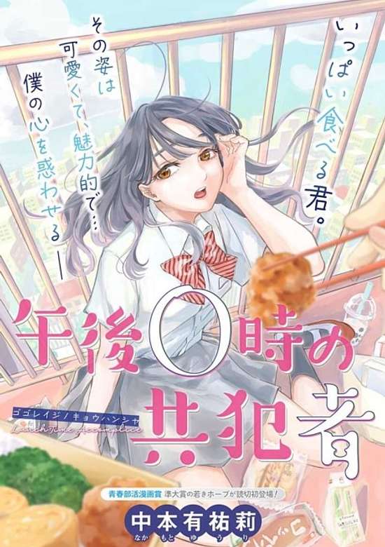 It's a secret in broad daylight — just by watching you eat, I'm being saved... or am I just crazy? Our male lead has a small appetite from a past trauma, so he hides away during lunch time. Our heroine doesn't want anyone to know that she's a big eater. What will happen when these two find each other on the rooftop at noon...? (Source: Shonen Jump Plus, translated)